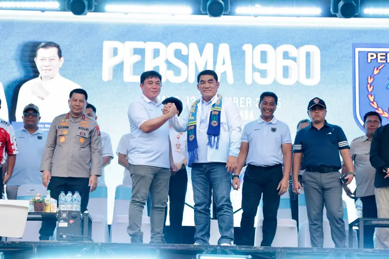 Manado, SULUTMEDIA.COM-Ribuan Masyarakat Kota Manado beserta sejumlah pejabat dan tokoh penting menjadi saksi kembalinya klub legendaris Persma 1960, Rabu, 12/11/25.