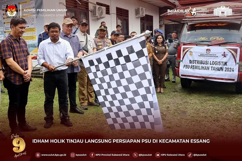 SULUTMEDIA.COM, Melonguane- Anggota Komisi Pemilihan Umum (KPU) RI, Idham Holik, melakukan supervisi dan monitoring terkait persiapan Pemungutan Suara Ulang (PSU) di Kecamatan Essang, Kabupaten Kepulauan Talaud, Selasa (8/4/2025).