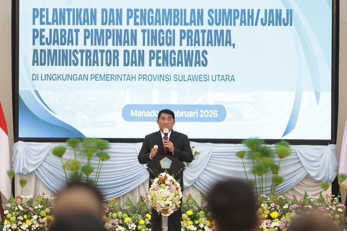 62 pejabat tingkat eselon II,III dan IV dilantik di wisma negara bumi beringin manado, Senin (9/2/2026).